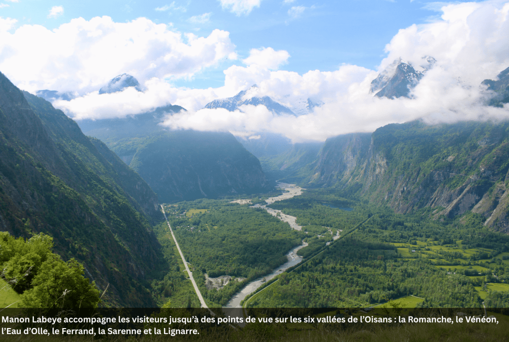 Cheveux blonds attachés par une pince et gilet vert fluo à l’effigie de la maison des guides de l’Oisans et de l’Alpe d’Huez, Manon Labeye connaît la vallée sur le bout des doigts. « Sur les flancs de la montagne vivent des chamois, des bouquetins, des hermines, des aigles royaux, des gypaètes barbus, des marmottes, des loups… », liste la jeune accompagnatrice en montagne. « On trouve aussi du génépi, du lis martagon et de l’edelweiss, la plante mythique des Alpes. »